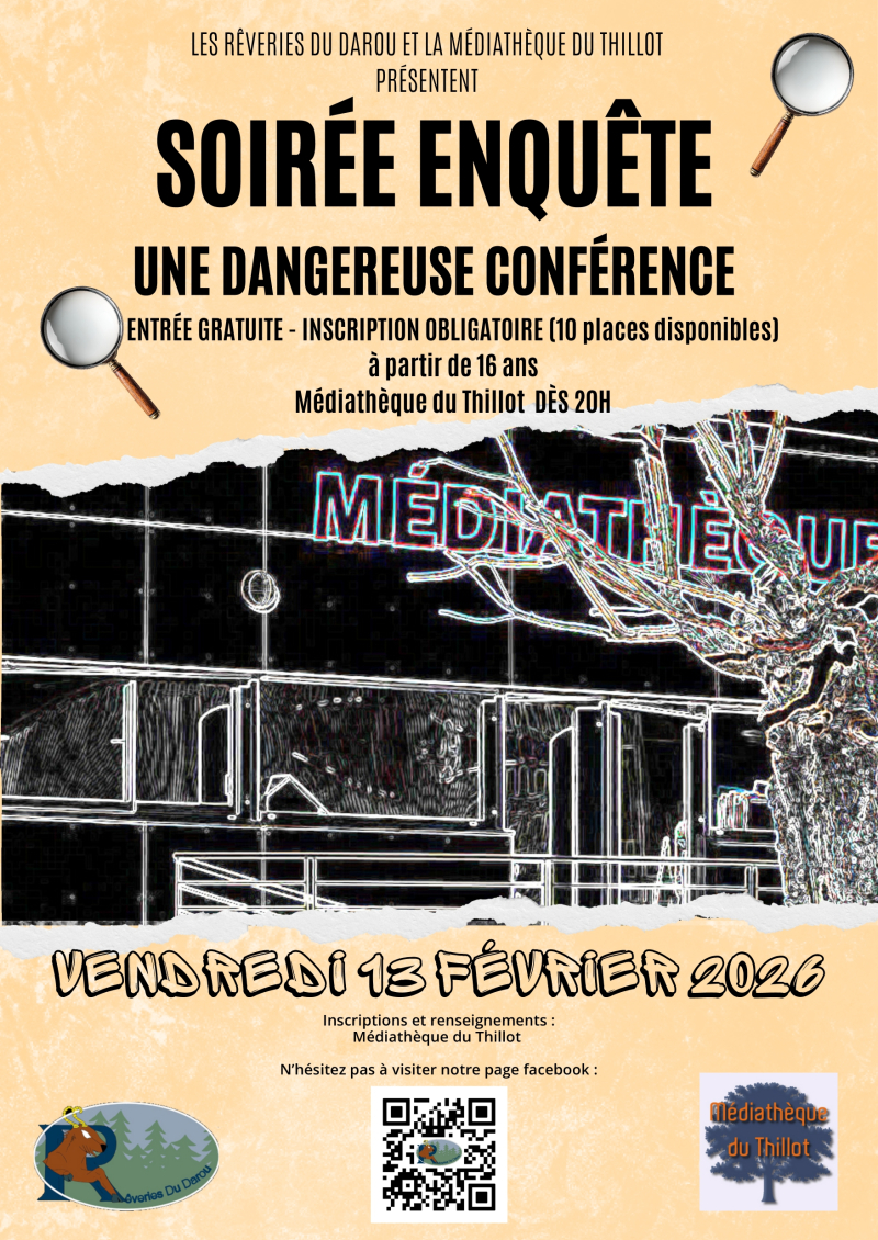 Avec “ Les rêveries du Darou “, nous vous proposons de participer à notre jeu-enquête :“une dangereuse conférence” pour une soirée immersive !