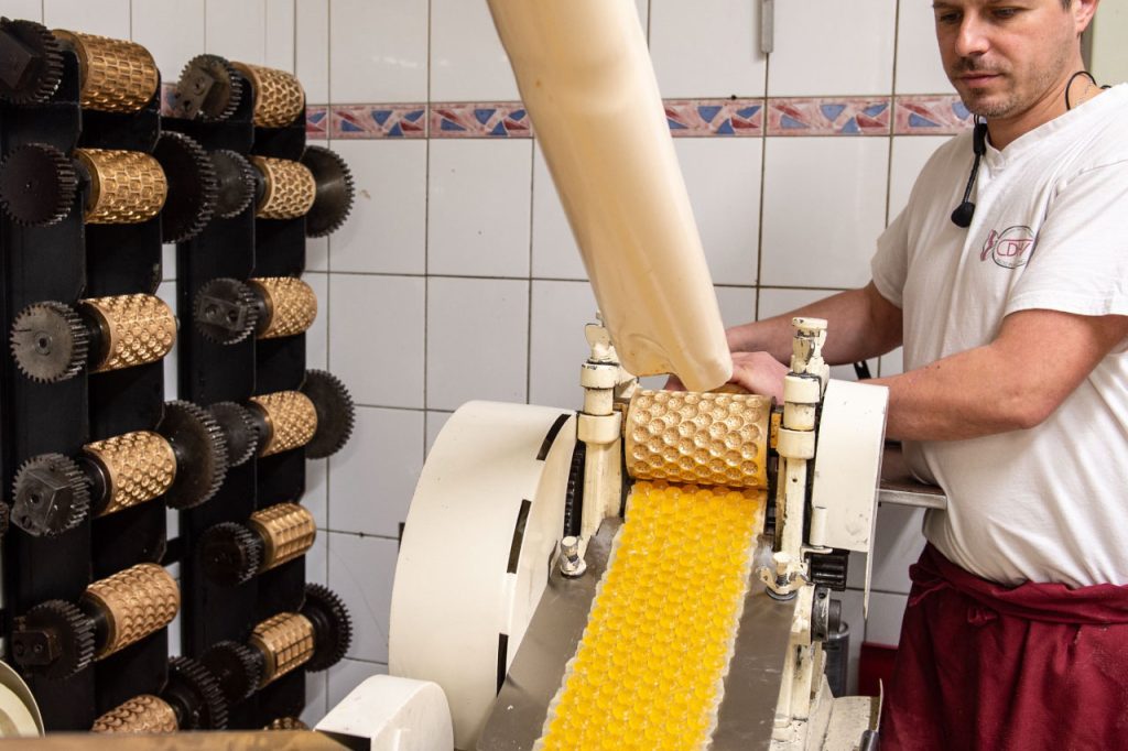 Les bonbons y sont fabriqués comme autrefois, en sucre cuit à feu nu dans des chaudrons en cuivre, avec des matières premières de proximité, avec des huiles essentielles et arômes naturels (sapin des Vosges, eucalyptus, bergamote...).